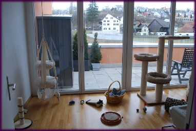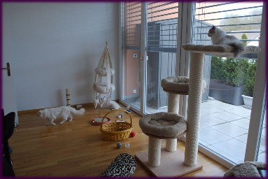 Unsere Busis haben die ganze Wohnung zur verfuegung, sie haben aber auch ihr eigenes Katzenreich.